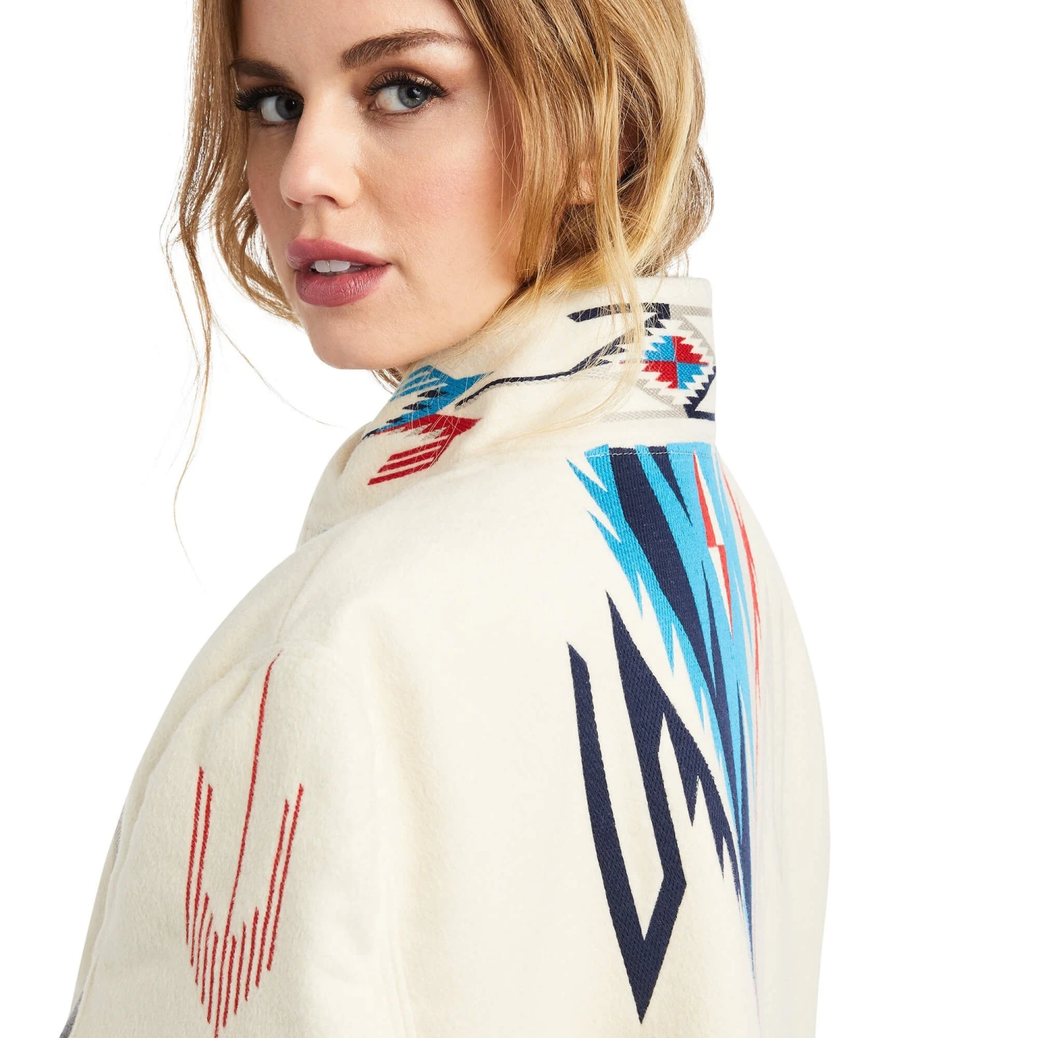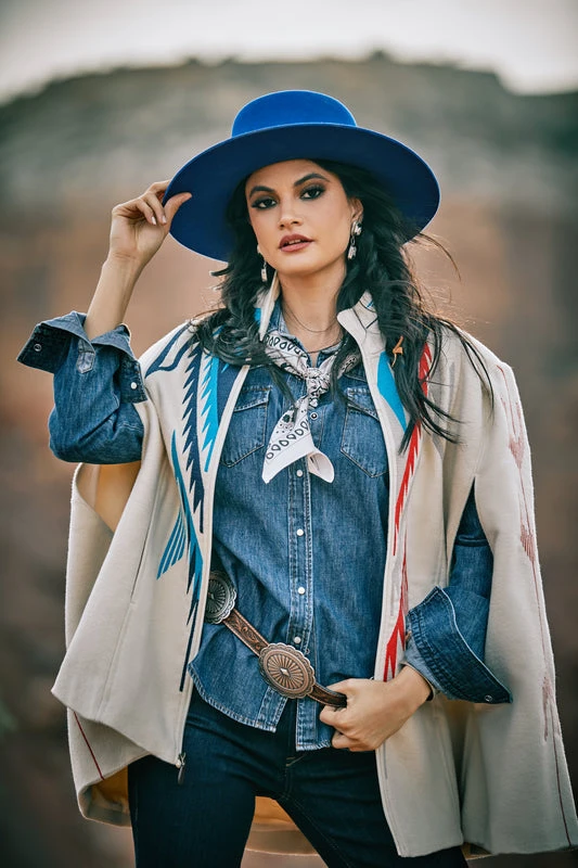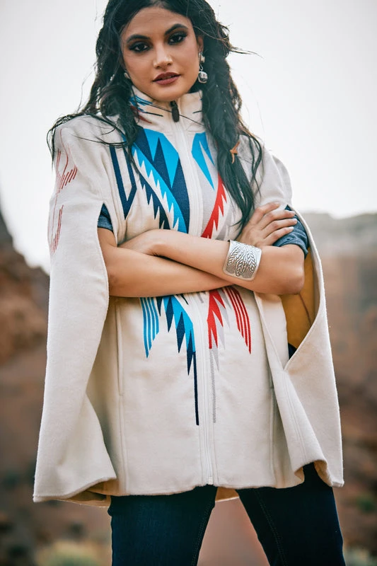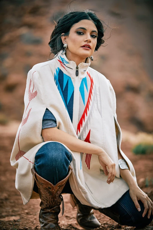 The artists at Centinela Traditional Arts created a pattern inspired by the Chimayo weaving tradition and we added it to this soft, wool-blend coat. Every detail, from the premium fabric to the intricate pattern, was designed with luxury in mind.