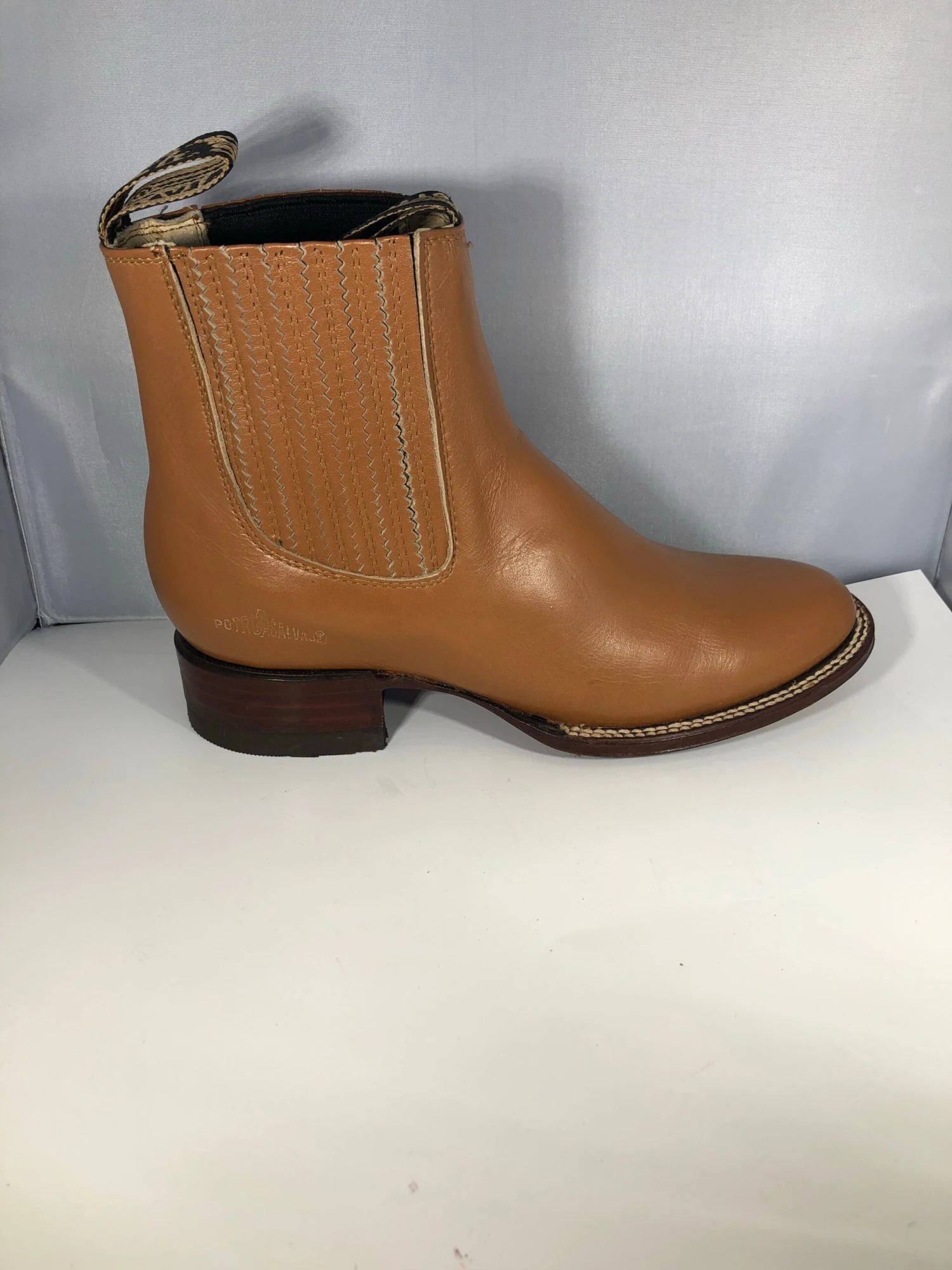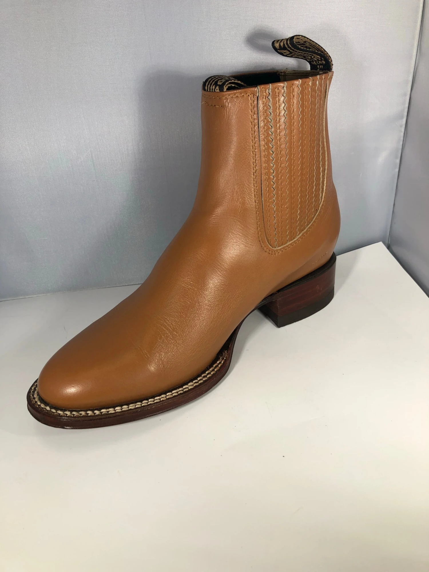 BOTINE CHARRO COLOR MIEL GAMOSA DE DOBLE COSTURA.MEXICAN SUEDE DOUBLE SEAM LEATHER ANKLE BOOT