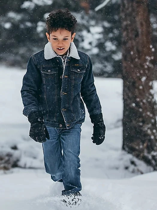 Keep your little guy warm during the cooler months in this sherpa-lined denim jacket. The Western detailing gives it an authentic style, so he’ll always be ready to take on the next adventure.