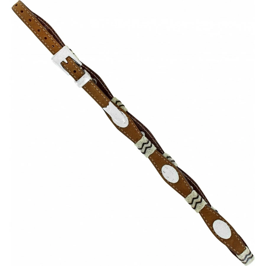 Every detail on this cowboy hatband signals the glory of the Old West – fine leather, silver-plate ornaments, and a special woven design, making it a tribute to timeless style and a lifestyle of rugged independence.
