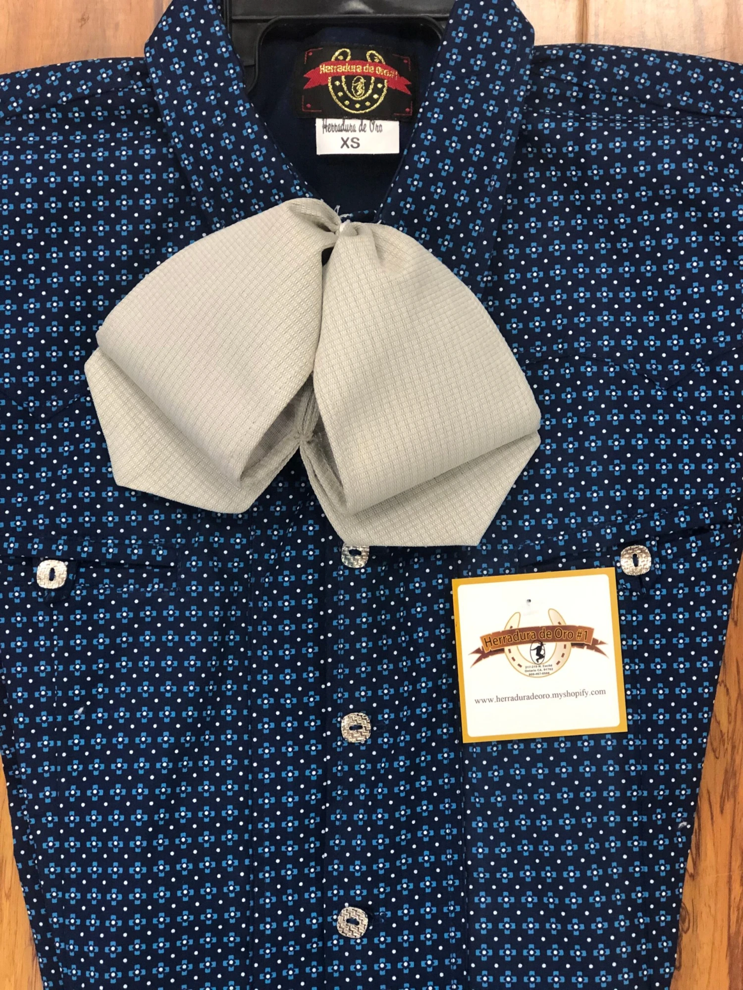 CAMISOLOA CHARRA AZUL ESTAMPADO DISTINTIVO. BLUE PAISLEY CHARRO SHIRT