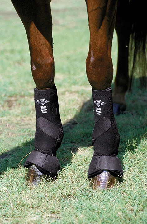 THIS COMBINATION OF A SPORT MEDICINE BOOT AND BELL BOOT PRIVIDE 360 DEGREE OF PROTECTION AND ABSORBS UP TO 26 % OF NEGATIVE ENERGY FROM THE HOOF IMPACT WITHOUT RESTRICTING YOUR HORSE NATURAL GAIT. AN ANTIMICROBIAL LINING PREVENTS TRANFER OF DERMATOLOGICAL DISEASES.