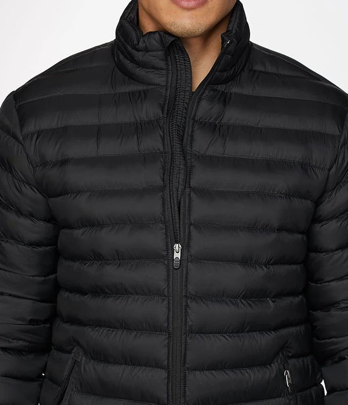 Description: Men’s high quality nylon quilted jacket with contrast lining.