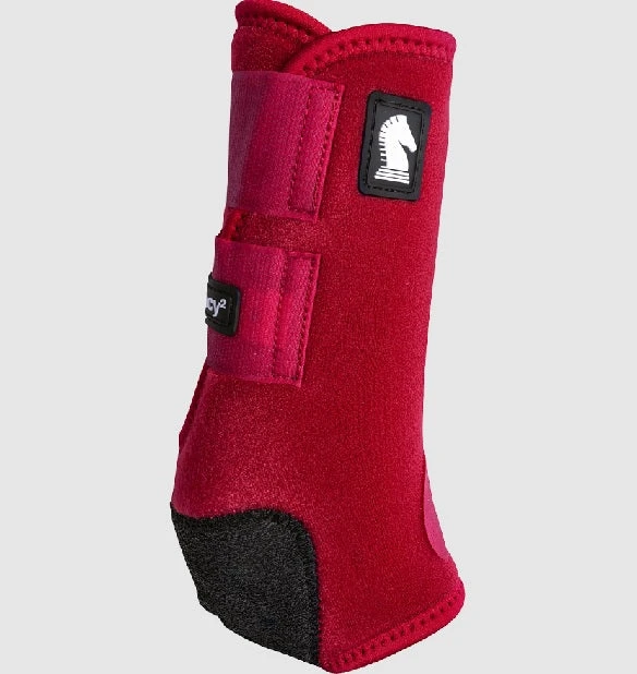 Made of 100% virgin perforated neoprene that allows the leg to breathe and heat to escape so your horses legs stay cooler. A round cut box-stitched hook-and-loop closure with elastic reinforcement makes the Legacy more secure. A shock absorbing splint pad gives maximum protection to the splint bone, tendons, and other soft tissues. The splint pad guards against crossfire injuries and allows for a closer, cleaner fit. A suspensory rib is positioned between the tendon and the cannon bone to ensure proper boot alignment. A patented Cradle Fetlock System provides maximum support and protection to the lower limb by a double layer of shock absorbing neoprene. An extended layer of tough, bulletproof material fitted on the cup area ensures durability. A series of fitting darts provides for a clean, close fit. Bound edges help keep dirt and debris out. COLOR: CRIMSON