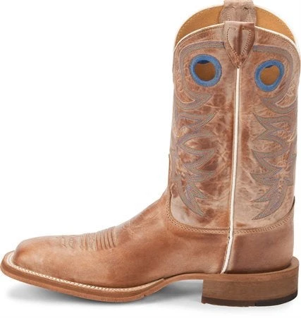 Featuring a beige chievo cowhide leather upper accented by a subtle bright blue stitch and the distressed texture of the leather gives this boot a lived-in look. Its wide square toe and long base block heel provide a relaxed fit and the J-Flex Comfort System® insole with the internal flexible midsole guarantees maximum comfort and pliability. The translucent rubber outsole provides traction and can easily move in and out of the stirrup.