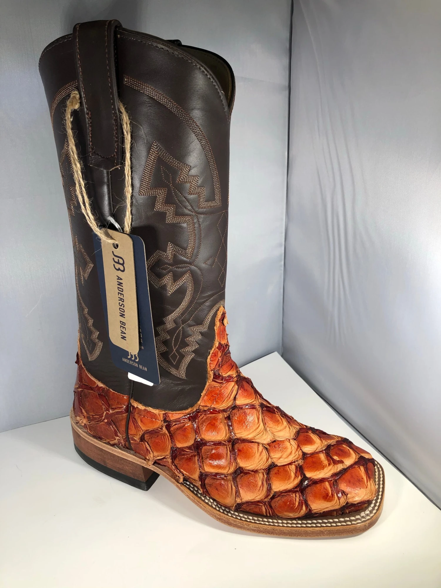 THESE BOOTS ANDERSON & BEAN BOOTS ARE EXCEPTIONAL. THIS BOOT IS A WIDE SQUARE TOE WITH A ” 12 ” INCH HEIGHT. THESE AMERICAN MADE BOOTS ARE CRAFTED BY HAND FOR COMFORT AND STRENGTH.