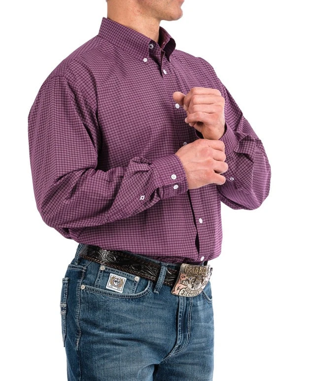 THIS IS A MUST CHECK OUT PURPLE PRINTED PLAIN WEAVE BY CINCH WITH A TIMESLESS GEOMETRIC DESIGN THAT NEVER GOES OUT OF STYLE. THIS LONG – SLEEVED SHIRT IS DESIGNED WITH WHITE BUTTONS AND NECKTAPE FOR EXTRA COMFORT.