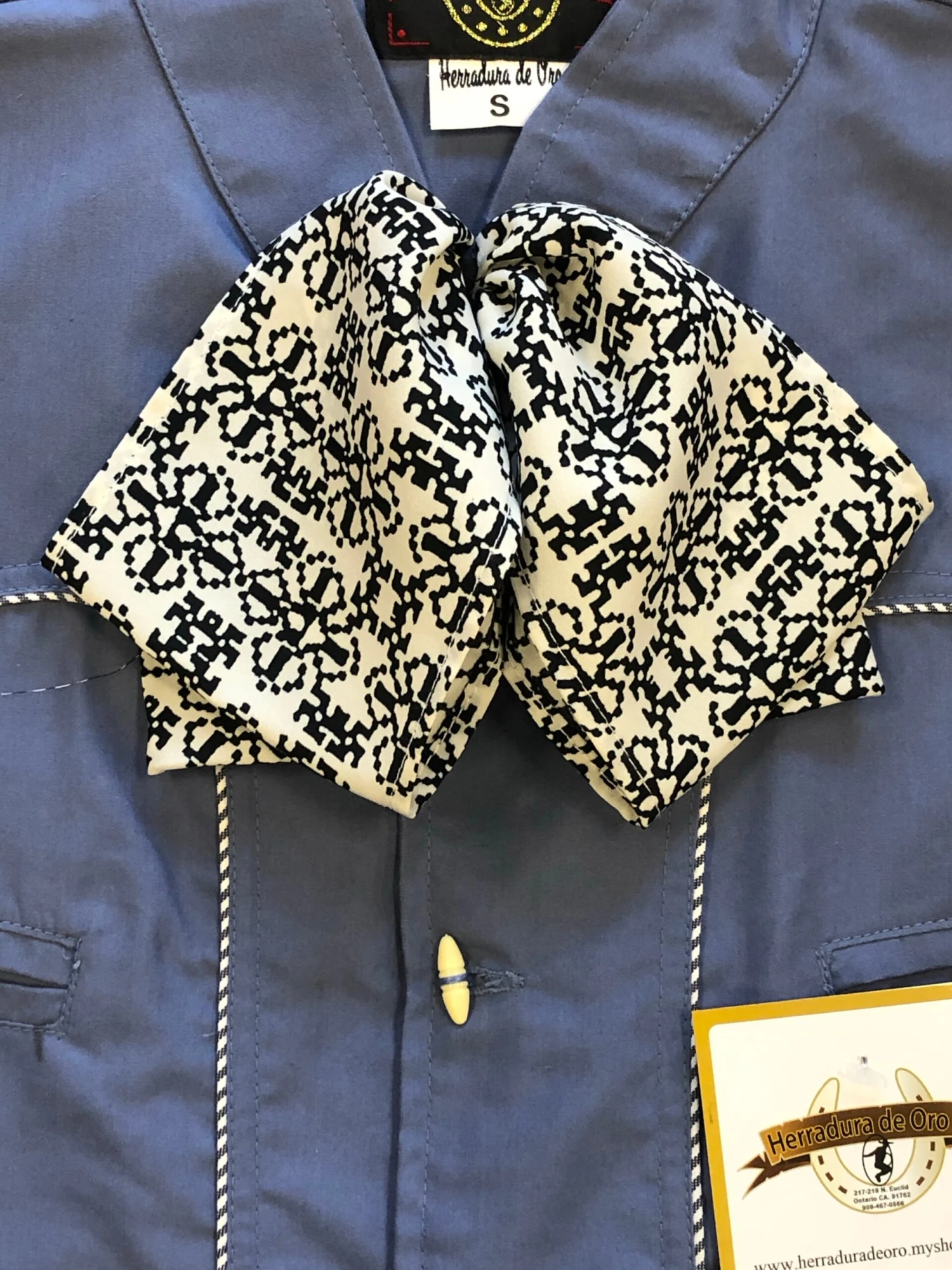 MOŇO DE CHARRO DE SEDA DE COLOR BLANCO CON AZUL MARINO. GORGEOUS SILK CHARRO TIE THAT HAS WHITE AND NAVY COLORS.