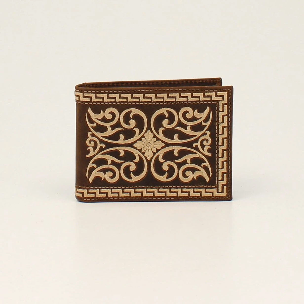 Carry your money in this fashionable Nocona bifold wallet by M&F Western Products. Brown with cream embroidered stitching. Inside features compartments for your credit cards, cash, and an ID window.