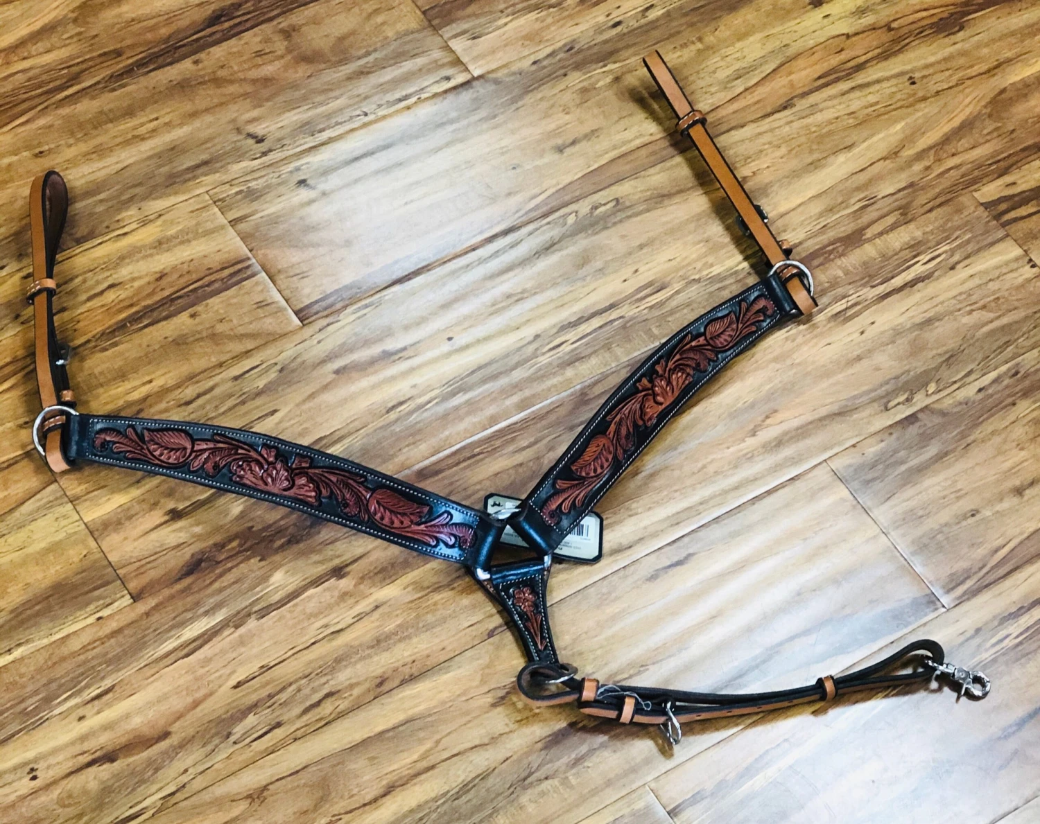 PRECHO PRETAL CHARRO DE VAQUETA PARA CABALLO. RICH BROWN CHARRO BREAST COLLAR