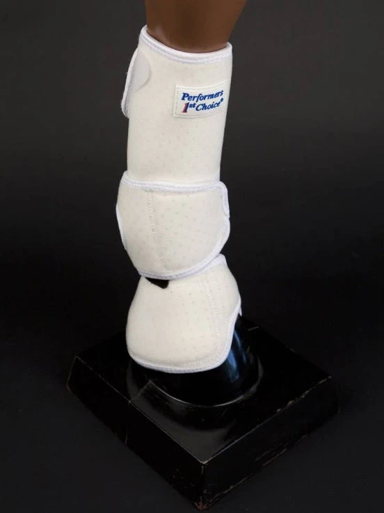 New Improved, Form Fitting Design!Features:Improved design with an even closer contour fitLightweight, less bulkAir-flow perforated neoprene to allow the leg to breath, releasing heatTwo strong “quick grip” closures make these boots easy to put on correctly every timeBell boots stays in place with cutback shape and “quick grip” tabFits like a second skin to protect your equine athlete while keeping the dirt outEasy to clean