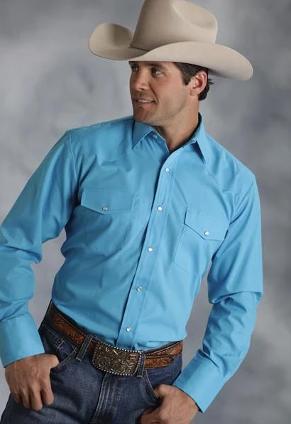 Roper Men’s Broadcloth Solid Long Sleeve Western Shirt