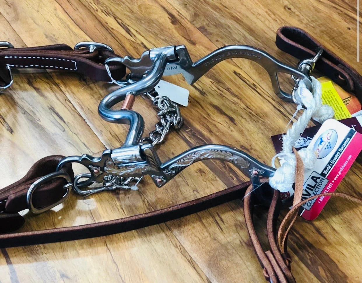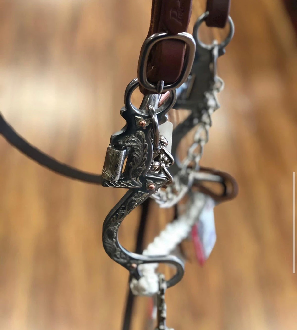 The Seven Shank design is weighted with an embellished cheek for the show arena. This bit features a medium port and copper roller that work off bar and palate pressure. The mouthpiece offers moderate tongue relief. Good for working with older, more mature horses. This bit requires light contact.