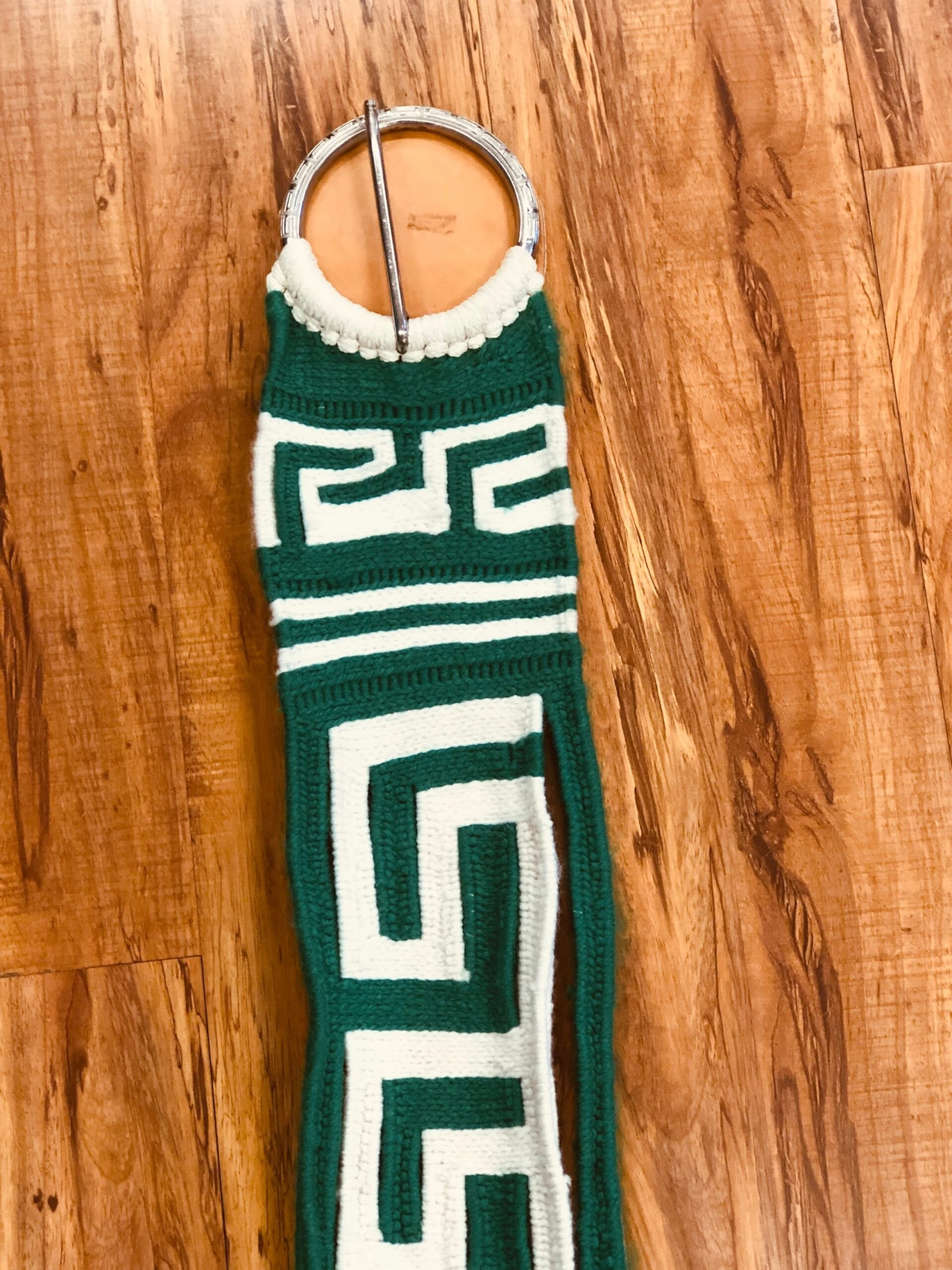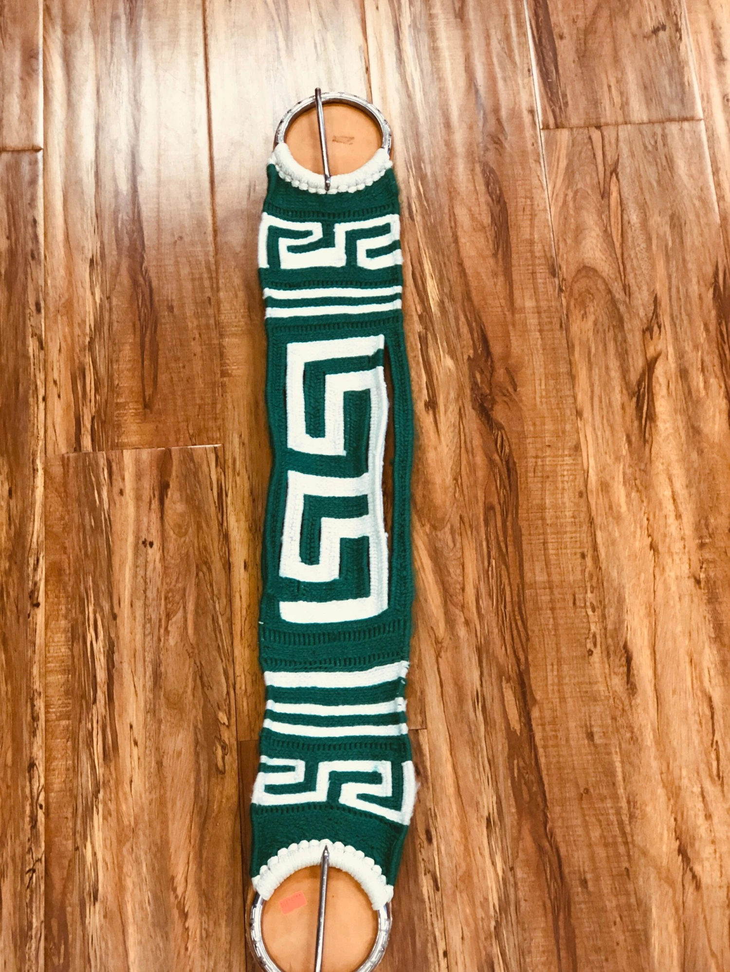 THIS MEXICAN CHARRO CINCH ALLOWS YOUR HORSE TO NATURALLY EXPAND WHILE KEEPING THE SADDLE SNUG IN PLACE. THIS CINCH IS A SUPERIOR PERFORMANCE. THIS CINCH IS COTTON MADE CINCH. THIS HAS A TRAITIONAL CHARRO DECORATION PATTERN. IT’S ABOUT 36″ IN LEGHT 4.5 WIDTH.