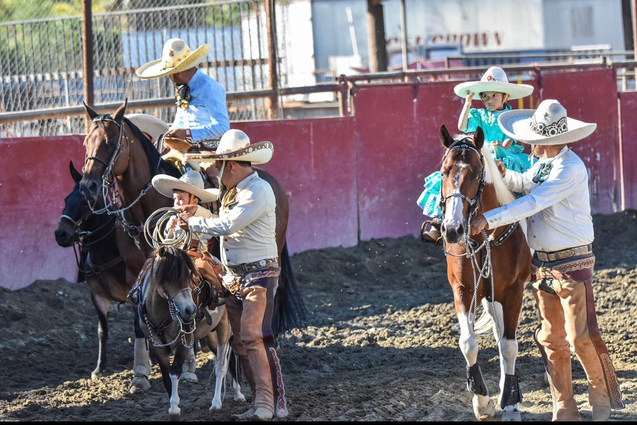 EL VESTIDO ES ROJO QUEMADO Y COLOR BLANCO Y NEGRO